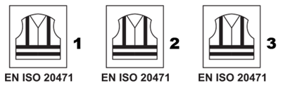 Les surfaces visibles dépendent de la classe du vêtement (plus le risque est élevé, plus les surfaces doivent être grandes) :